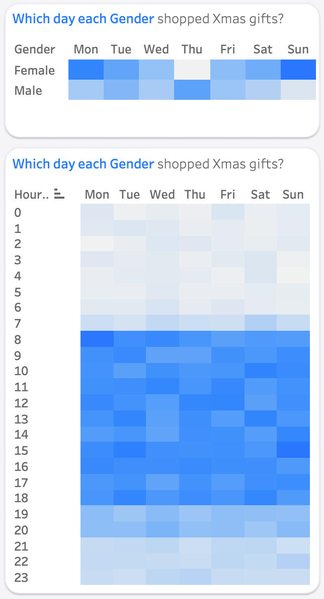 Weekday afternoons at 4 pm witnessed the highest online sales.While females preferred Sunday and Monday for Christmas shopping, males leaned towards Thursdays for their festive gift-buying spree.